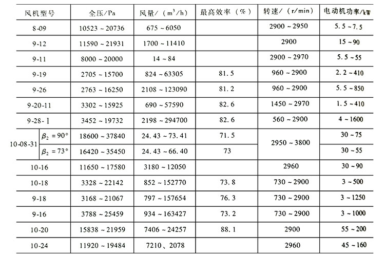 CPC型的全壓最高達10000Pa,風量最大達16200m3/h,轉(zhuǎn)速800~7650r/min.